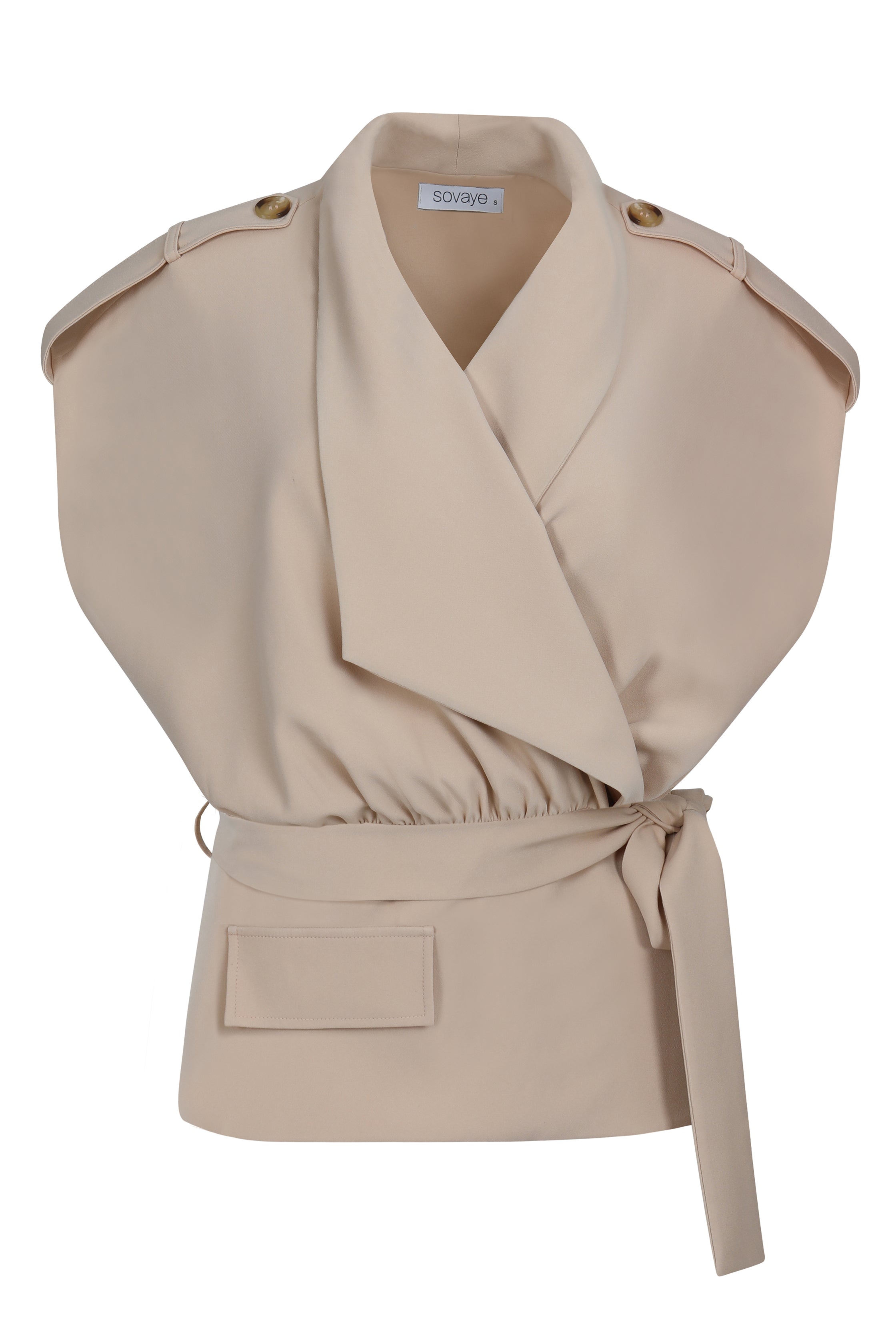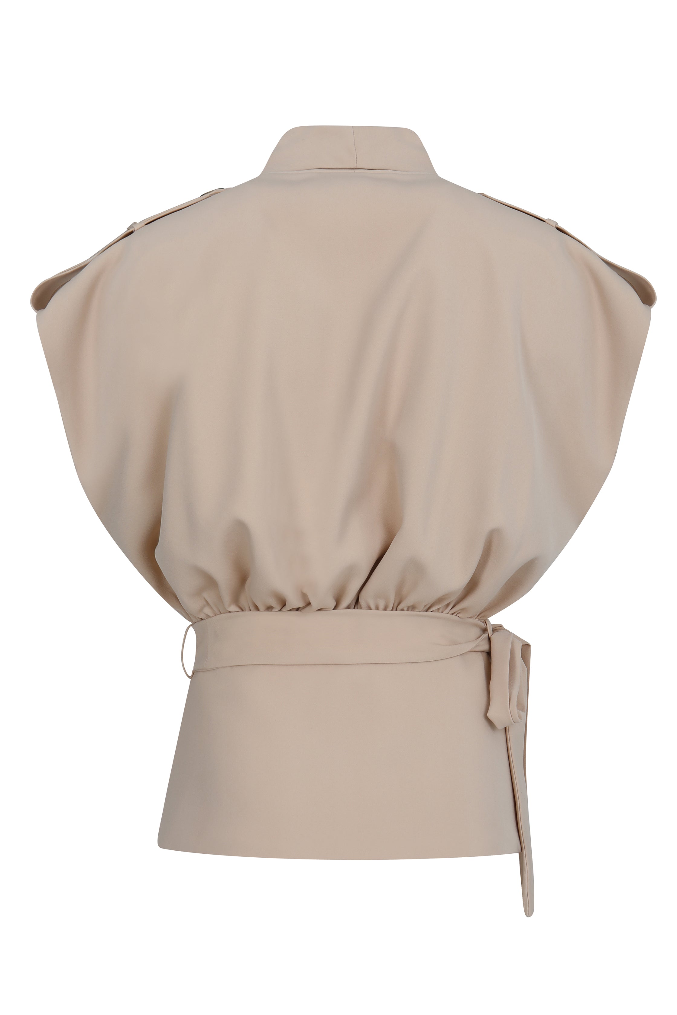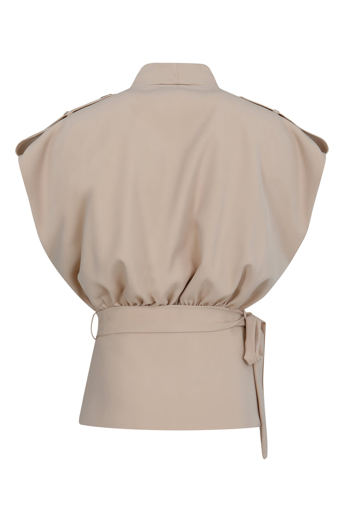 Part of the Haven set, this blouse is inspired by the sharp elegance of a trench coat, featuring an oversized upper silhouette that tapers into a fitted waist for a striking, modern shape. Perfectly paired with the Haven Pants, it creates a contemporary business look that transitions effortlessly from the office to a stylish dinner, combining bold design with professional sophistication.