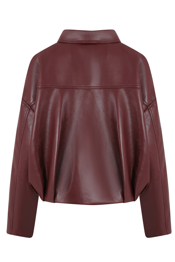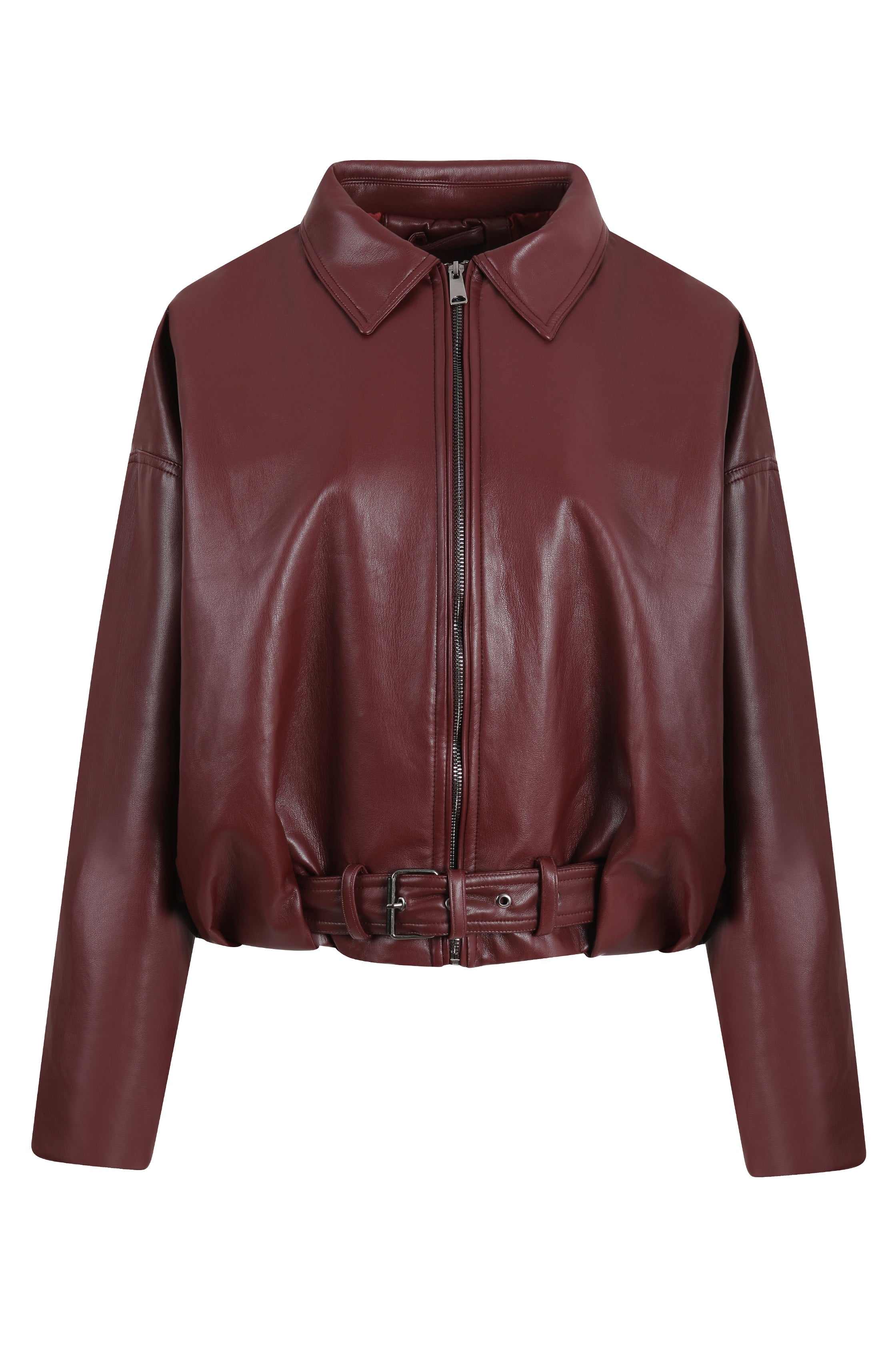 The Arden Jacket is bold, confident, and effortlessly cool. Crafted in a deep burgundy faux leather with a soft matte finish, it brings a modern edge to a classic bomber silhouette. The oversized fit and structured shoulders balance comfort with attitude, while the adjustable waist belt allows you to define your shape or leave it loose for a laid-back streetwear vibe.