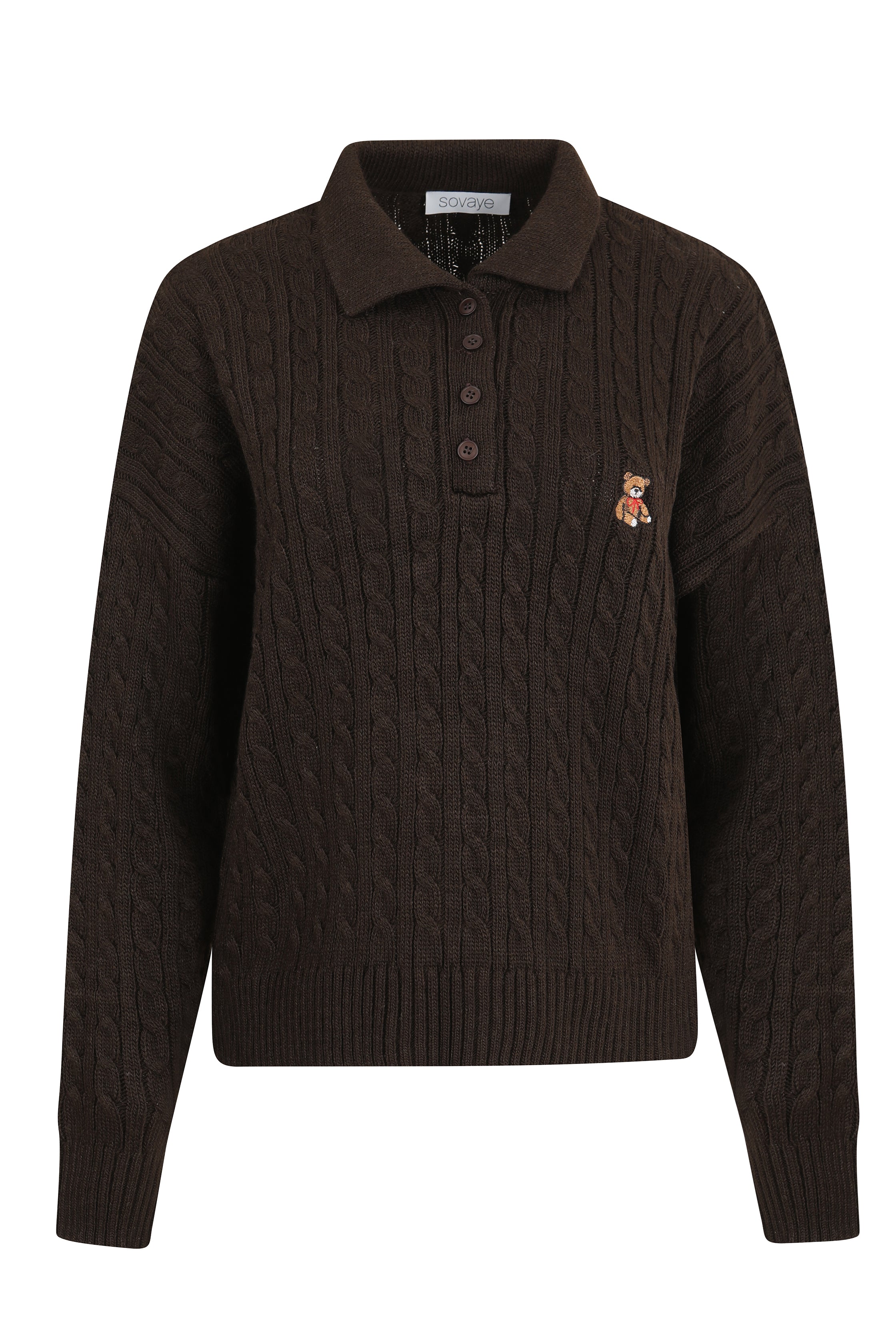 Playful and cozy, this brown sweater features an adorable teddy bear embroidery that adds a fun, whimsical touch. With a relaxed fit and soft knit, it’s perfect for pairing with jeans or layering for a casual, stylish look. A charming piece that balances comfort with a hint of personality.